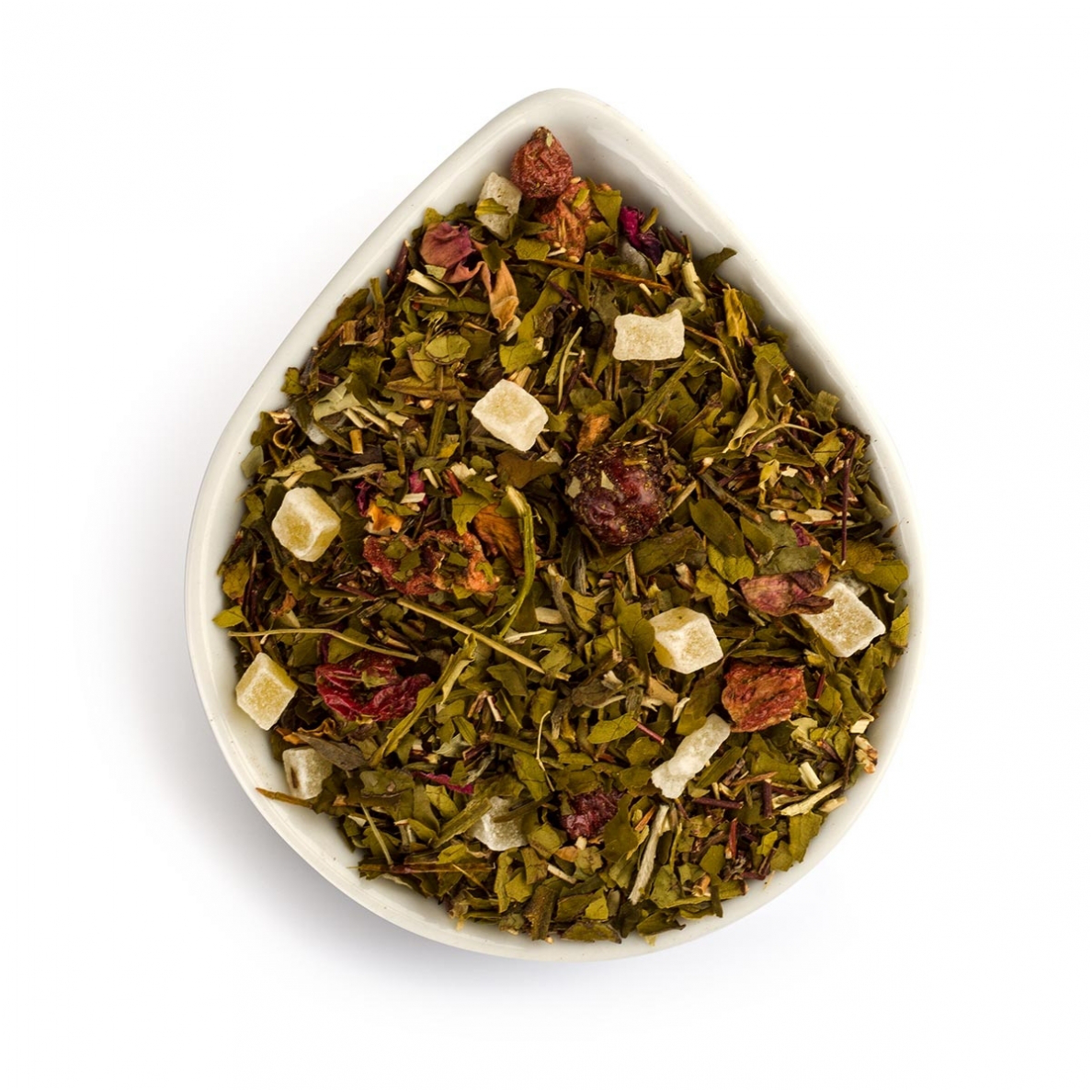 This is a wonderfully aromatic and flavorful green bamboo leaf tea, made with green Kenyan tea, rooibos, bamboo leaves, caramelized mango pieces, honey pieces, strawberry pieces, rose and cactus petals, and red currants. This tea has already become our best-selling product!
